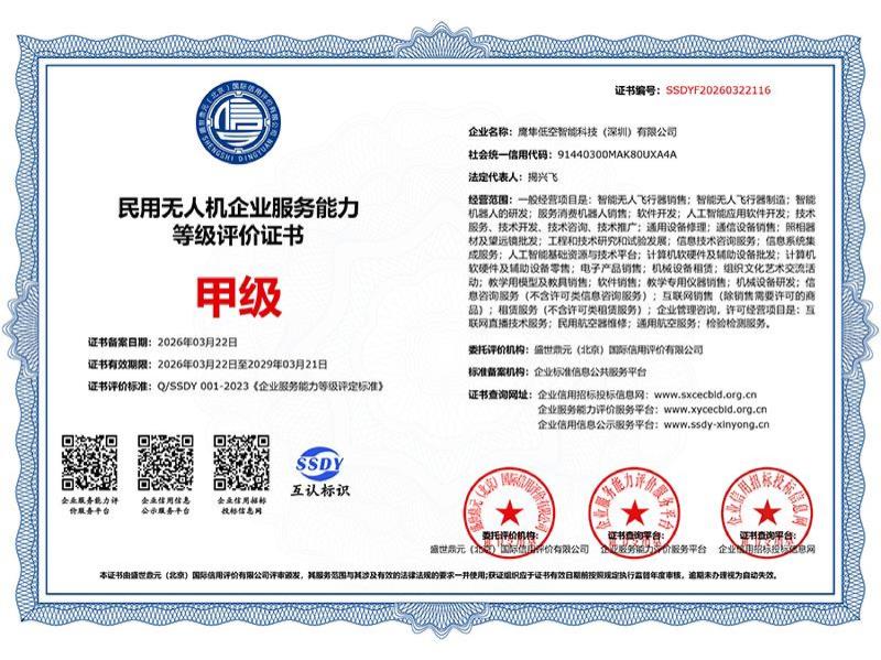 民用无人机企业服务能力等级评价证书