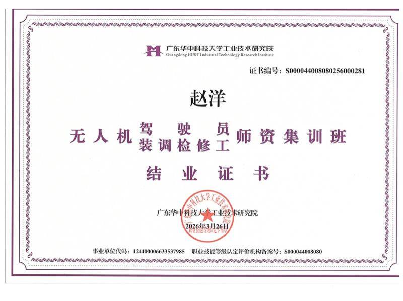 无人机师资培训班结业证书