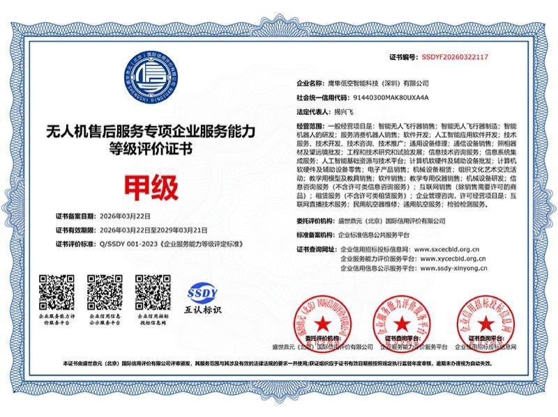 无人机售后服务专项企业服务能力等级评价证书
