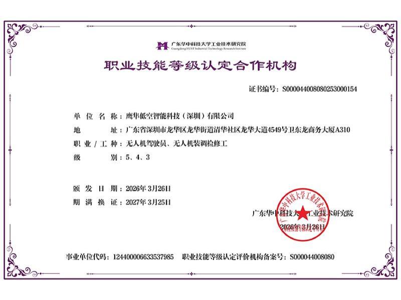 无人机校企合作专项企业服务能力等级评价证书