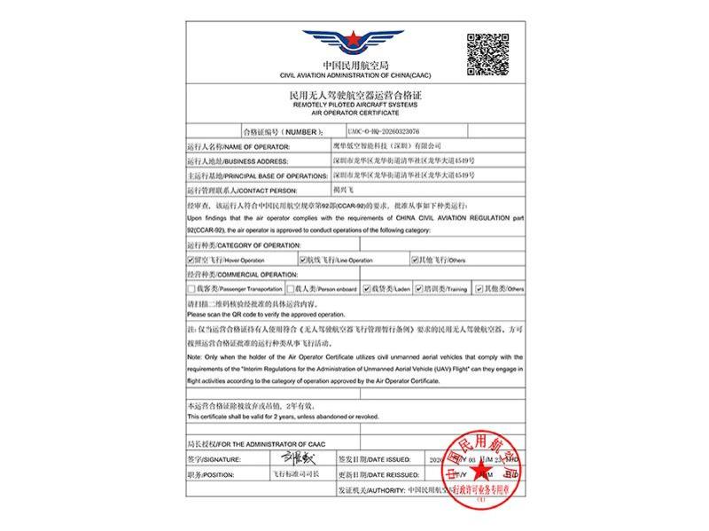 民用无人驾驶航空器运营合格证